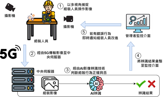 本系統能精準快速的檢測組裝人員的錯誤行為,實時監控生產過程並即時糾正錯誤,以提高產品品質控制。