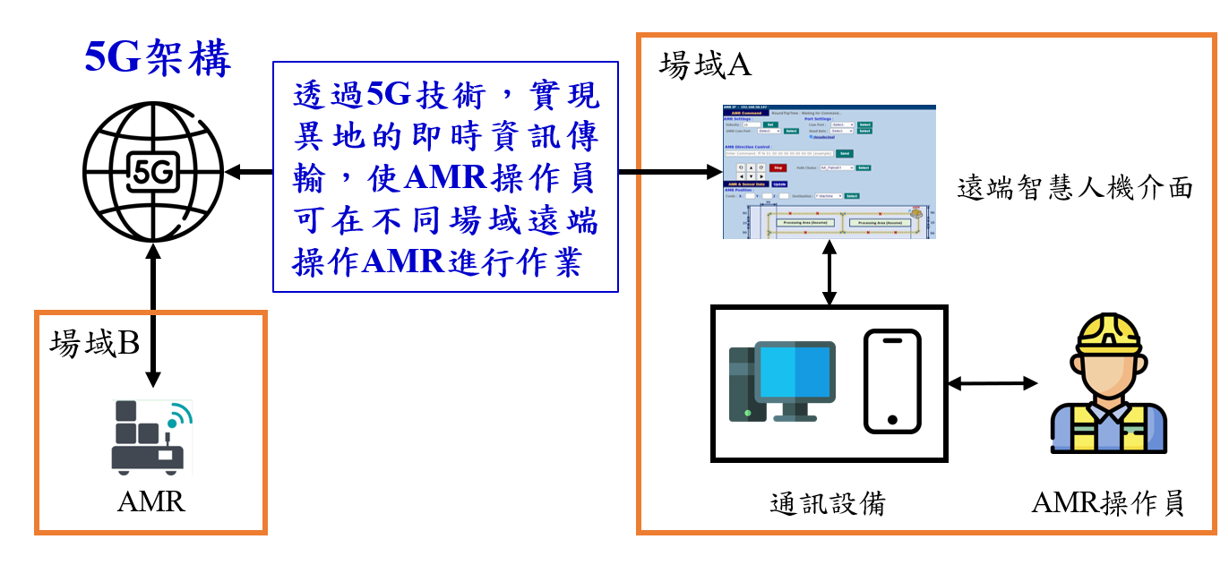 操作人員可透過遠端智慧人機介面在異地靈活控制AMR,